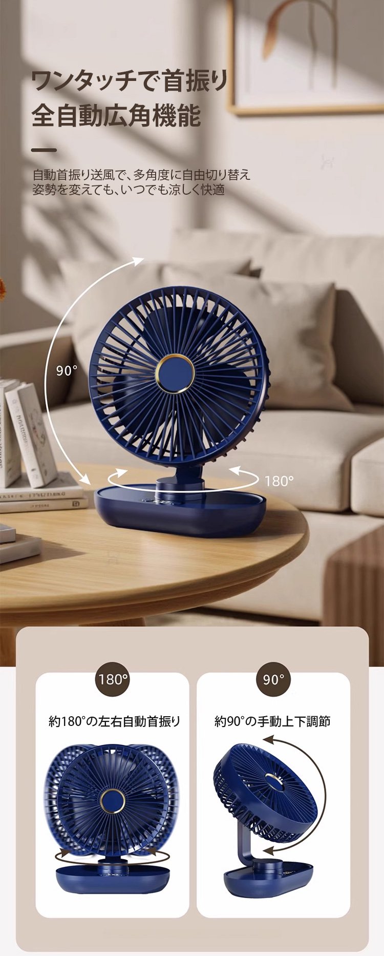 360度首振り可能な卓上扇風機の特徴