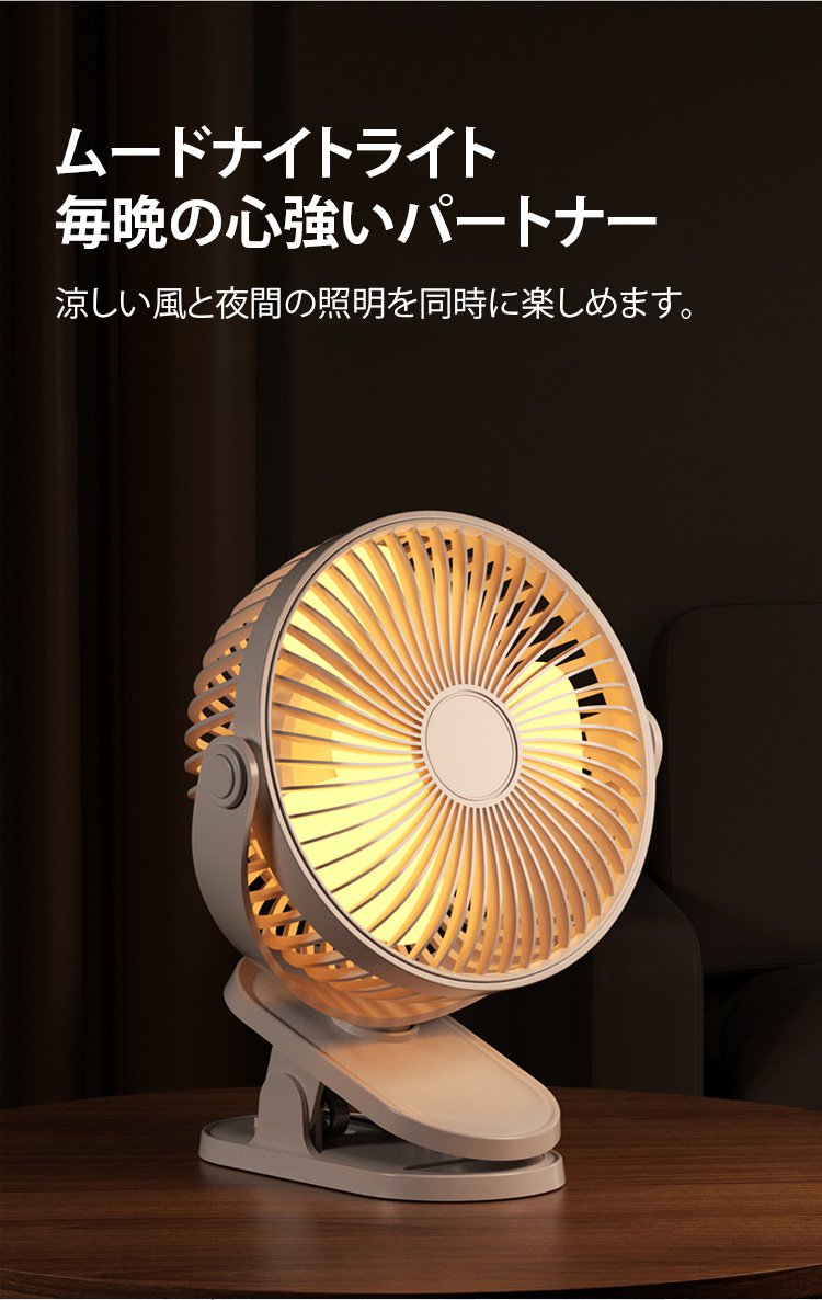 【クリップ式】USB小型静音ファンLEDライト付き